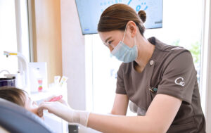 C0・C1段階の初期むし歯では、フッ素塗布やブラッシング指導による再石灰化の促進を重視しています。削らずに経過観察できる場合は、その選択肢を優先します。
